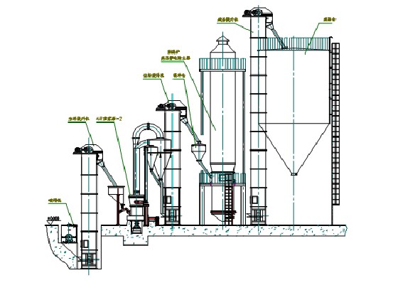 1. 破碎機(jī)將大尺寸的石膏礦石破碎成小于25mm的小塊顆粒,經(jīng)過(guò)儲(chǔ)存及輸送進(jìn)入磨機(jī)進(jìn)行粉磨,經(jīng)選粉機(jī)將粉磨后達(dá)到產(chǎn)品所需細(xì)度的石膏生粉送入沸騰爐進(jìn)行煅燒,其余部分返回磨機(jī)進(jìn)行再次粉磨直至合格。煅燒后的合格石膏粉送入熟料倉(cāng)儲(chǔ)存或送入制品車間使用。